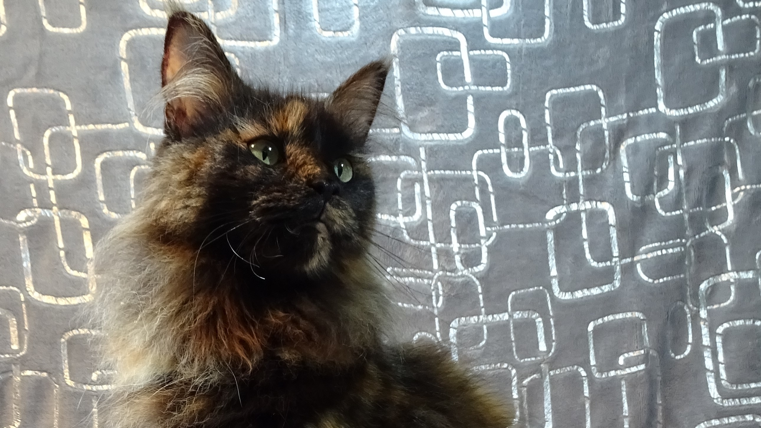 Une femelle est née. Superbe couleur : Black tortie silver avec très peu de tortie… Née de Tyrfing et Romulus